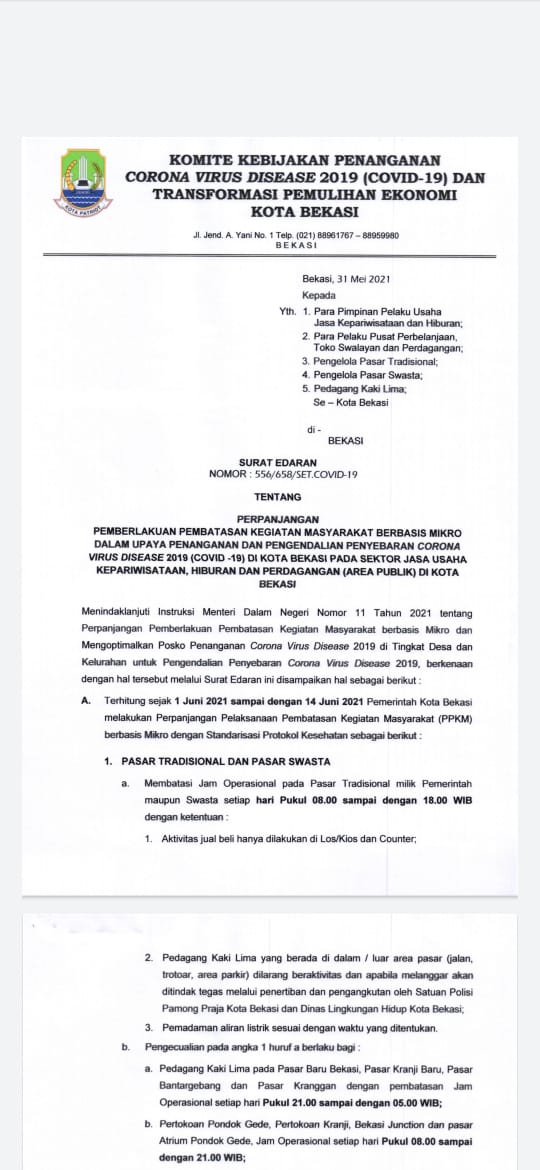 Pemerintah Kota Bekasi Pemerintah Kota Bekasi Resmi Perpanjang Ppkm Dari Tanggal 1 Juni Sampai 14 Juni 2021